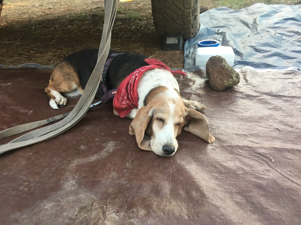 1. The tarps are really a combination of all of the above. We noticed in New Mexico that the ultra-dry conditions created a lot of dust in highly used campsites. We found that the dogs were getting filthy and we would need to use what little water we had to clean them before putting them into the teardrop. We also found out that most of the county has foxtails, which we had to have removed from Lilly’s gums. If you do a quick google search of foxtails, you’ll be surprised at how devastating these things are for dogs. So the tarps have really helped to keep the dogs out of the dust and those foxtails. In the event of any kind of precipitation the tarps help provide a cleaner surface for us to be on so that we don’t track in mud. If they are wet, we shake them out as best we can and fold them up wet. They’re stored in the rear of the truck where everything is sort of dirty anyways and we usually have time to dry them out within the following days. We don’t use them at every site but they’re definitely handy for lots of things. Glad to hear you’re enjoying the blog! I’m still behind but should have some time to post more tomorrow. Needing to blog Idaho, Montana, and Wyoming before I’m caught up!